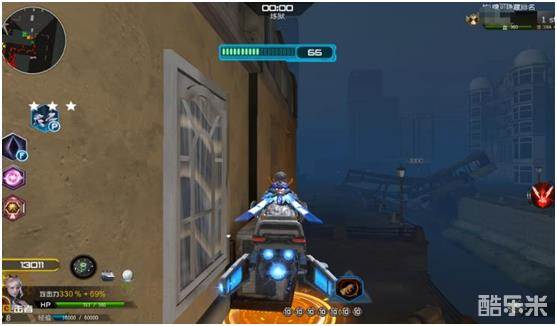 我们随机到了医院地区,同样冲刺+战车,冲到门栏利用泰坦的空间信标技能(F技能)传送出去,由于能量恢复没那么快,所以前面不用很急。
