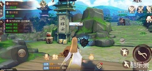 4、之后,大家使用轻功跳到【满祥云】招牌的上方,就可以进行挖宝了。