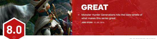 《怪物猎人X》(美版名为《怪物猎人:世代》)带来了诸多的创新,甚至相比前作显得更加“激进”。本作日前登陆了北美市场,所以IGN评分到现在才出来。不过本作还是较好地在传统和革新之间找到了合适的平衡点,《怪物猎人X》依然是那款能够令人沉迷上百小时的《怪物猎人》。IGN给出了8.0分。