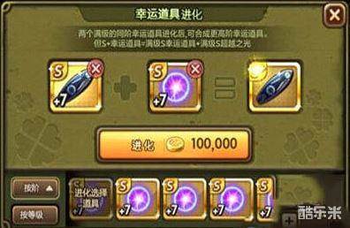 此外,玩家也可以将两个满阶的同阶幸运道具进化为更高阶的幸运道具。例如,原有的S级道具仅能通过升满S卡或抽取的方式获得,而现在我们也可以通过进化的方式来获得S级幸运道具,即A+幸运道具(+7)+A+幸运道具(+7)=随机S幸运道具。值得一提的是,通过这种方式也有一定几率合出头盔、羽毛、香水这些热门S道具哦!再也不用因为合不出菲奥娜而心塞了有木有~