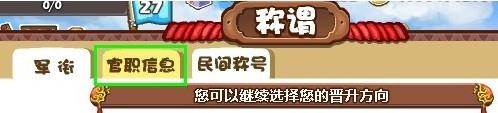 1)官职又分为“官职信息”及“民间称号”,目前民间称号无任何效果,建议大家升级普通官职就可以了。