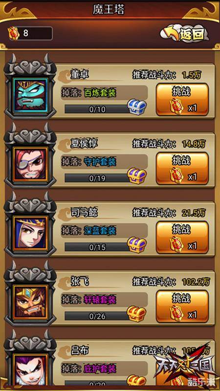 装备获取 《天天怼三国》挑战魔王塔