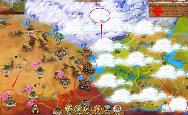 1.探索功能:先点击探索再点击发亮的城池然后全选你的将领,点击确定。