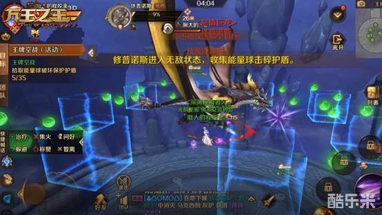 王牌空战活动的终极任务是消灭巨龙“修普诺斯”,进入活动后,玩家将骑乘魔法扫帚,与半空中的巨龙进行大战,但这个大BOSS十分狡猾,周围坚硬的护盾很难被击穿,这就需要玩家朋友们拾取飘在半空中的绿色能量球了,当能量球集满后,就可以填充魔能弹轰炸巨龙的护盾。