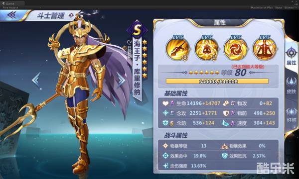 《圣斗士星矢手游》海王子库里修纳技能属性相关介绍