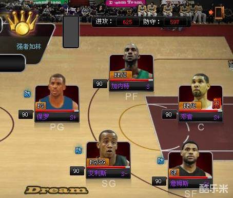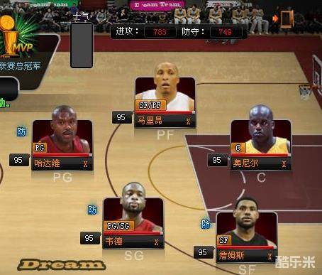这是新加的一个关卡,联赛总冠军,可能上赛季是热火夺冠的,所以这个关卡就用热火的王朝球队代替了把?!首发攻:783 防:749