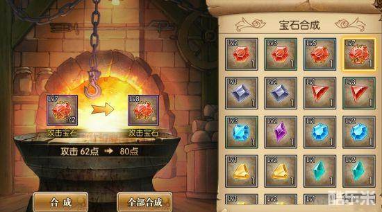 我们打开铁匠铺,然后会有合成,点击就会出现上图,然后选择想要合成的宝石就可以啦,这个合成是不需要金币的哦,所以小编建议大家有就合,放着还占空间。