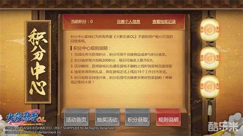 《火影忍者OL》手游积分中心上线,玩家马上加入,为重踏火影之路备足“军需”,急速成长!