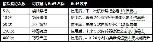 2.累积镔铁祭祀次数,领取暴击Buff: