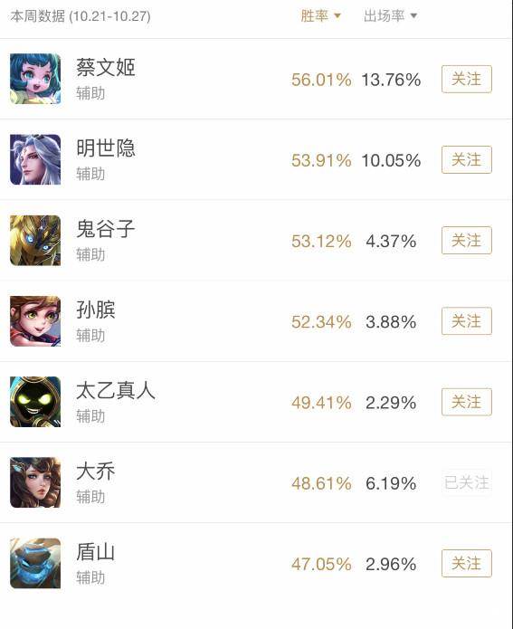 根据胜率排行榜大家可以看出蔡文姬以56.1%的胜率遥遥领先,在kpl大热的盾山虽然垫底但是在路人局的胜率也达到了47.05%。好了话不多说,让我为大家详细介绍下当前版本比较强势的几个辅助英雄。