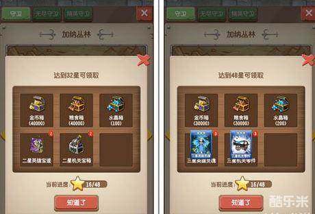 值得一提的是每个关卡根据难易度可获得星星数量,“容易”难度通过后会获得1颗星,“普通”难度通过后会获得2颗星,“困难”难度通过后会获得3个星,收集星星数量分别达到16颗、32颗、48颗即可获得此副本地图的礼包奖励,收集星星越多奖励的礼包就越给力哦。