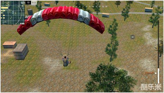 玩家可以自由选择航线上的点进行降落。在降落的过程中,可以控制降落伞的方向微调降落到地面上的位置。