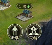 点击建筑弹出两个选项,分别是升级与功能,点击升级进入建筑升级界面
