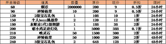 活动开启时,角色达到对应等级,会弹出活动图标,玩家点击图标可以限时优惠购买道具。