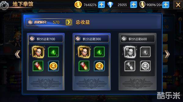 “地下拳馆”一共有100层,玩家挑战的层数越高,获得的奖励也会越来越丰富,每次挑战成功就会向下层移动,并且获得相应的拳馆积分。那么积分可以用来做什么呢?“地下拳馆”设有“拳馆商店”,玩家可以在里面购买部分的角色碎片、武器觉醒碎片、戒指经验石和金币,购买的东西可谓是相当超值哦!除了可以在“拳馆商店”购买东西之外,“地下拳馆”还设有阶段性奖励,当拳馆获得的总积分达到某个阶段时,即可领取丰厚的奖励,当然也是阶段越高奖励越丰厚的哦!