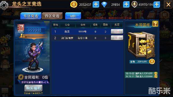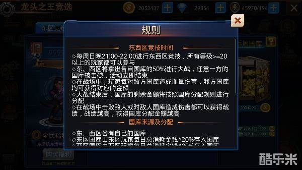 想要登上王位者,单单建立公会而没有活跃公会成员王座站不稳的哦!福利等级越高,全区增加属性越高,当然会长所消耗钻石也是要一定量的哦! 以及东、西区竞选结束后即是东西区竞技时间,东、西区将拿出各自国库的50%金币进行东、西区大战抢夺,大战结束后剩余金额进行分配。