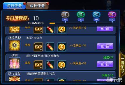 “在你不停变强的路上,顺手就能完成的任务。”任务包含“每日任务”和“成长主线”,奖励包括钻石、经验、道具还有我们关注的金币。每日任务的金币量是非常丰厚的,点击“前往”,完成日常的同时还有外快,活跃度宝箱也奖励大量金币哟!总结:日常来源,细水长流!