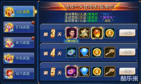 【奖励】奖励中的“七日奖励”、“在线奖励”、“等级奖励”,都有金币可领取。其中在线奖励,只需在线30分钟,可获大量金币和丰富道具。天天在线,天天奖励。