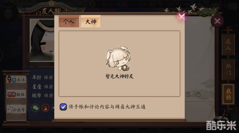 在聊天系统互通后,友人帐也即将开启动态同步功能。各位阴阳师大人只需在游戏内友人帐选择和网易大神互通,就能实现友人帐动态与网易大神个人动态同步的功能,更方便快捷地向外展示游戏内容、与好友互动。