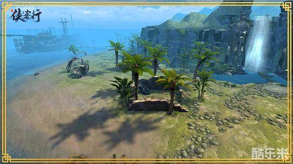 侠客岛作为《侠客行》原著中的标志场景,在手游中也以侠客外岛的形式展现了出来。在游戏中,椰树、石板路、瀑布和船坞等场景十分细致,一个夏季海岛的景象跃然眼前。而在细节上也把握的足够精致,树影、水雾,渐变的远景,江湖美景该是如此。