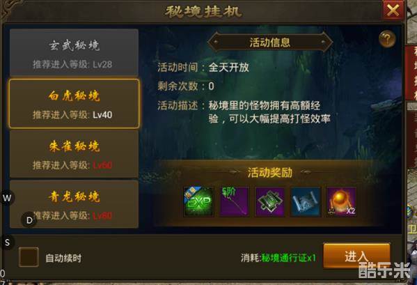 在中州城,有秘境入口,在这里挂机,可以获得合成宝藏图的材料。