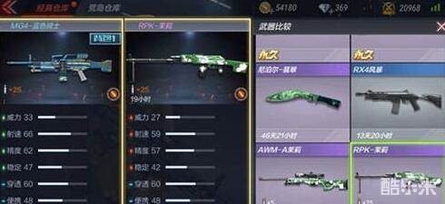 如图,MG4-蓝色骑士和RPK-茉莉相比,前者威力、射速、精度和稳定性高于后者,其他数据保持一致,即:MG4-蓝色骑士全方位碾压RPK-茉莉(PS:后者品质为紫)。