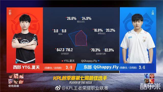 王者荣耀KPL秋季赛第七周最佳选手数据报告——西部YTG.夏天 东部QGhappy.Fly