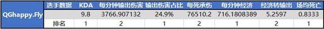 近几周荣获周最佳选手的边路在数据项上都有着一定的共同点,输出向数据远优于承伤类数据,分均承伤以及承伤占比较低,也体现出各支战队以及顶级边路选手在具体风格执行上的转变思路,将两条边路的分工进一步明确,且不断追求极致。而Fly本周的数据就显得十分极致,经济转承伤的数据排在东部最后一名,将所有的资源全部用来打出伤害。