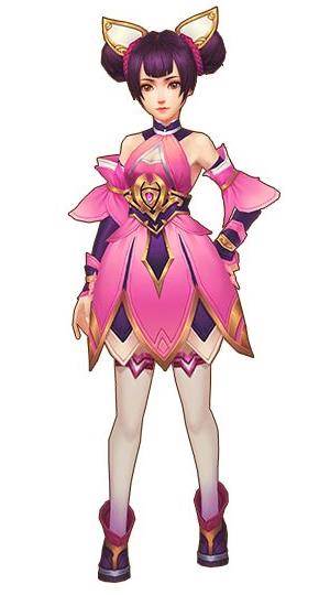 除了整体使用粉红凸显出霞露的可爱以外,还有紫色头发和金色外饰的点衬,表示可爱俏皮霞露也许是哪家的千金?