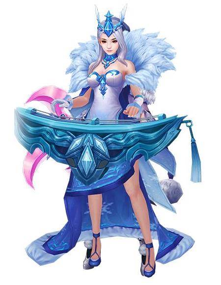 戴上臻冰头冠,身披轻薄雪纱。腕足冰晶鞋履,再抚琴瑟一曲。