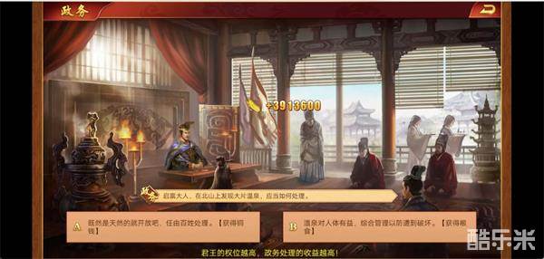 《佳丽时空》政务是各位王上获得资源收益的主要来源,通过处理政务可以获得铜钱和粮食,王上的权位越高,政务处理的收益就越高。
