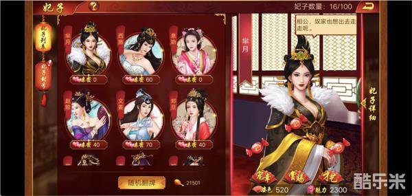 所有的妃子都在“后宫”中,玩家可以去“后宫”查看当前的自己有妃子。