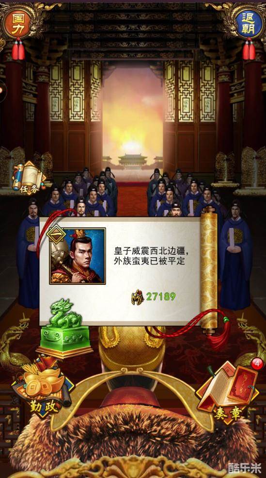 《大唐皇帝》是一款原创的宫斗类型手机游戏,玩家在游戏中扮演新登基的大唐帝皇,率领麾下众多文臣武将,为了我泱泱中华,开疆辟土,与帝国的敌人斗争、与天灾人祸斗争。