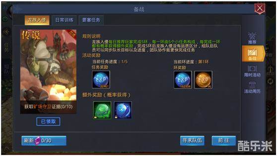环任务性质,每一环包含5个小任务,环的品质越高,获得奖励越丰富