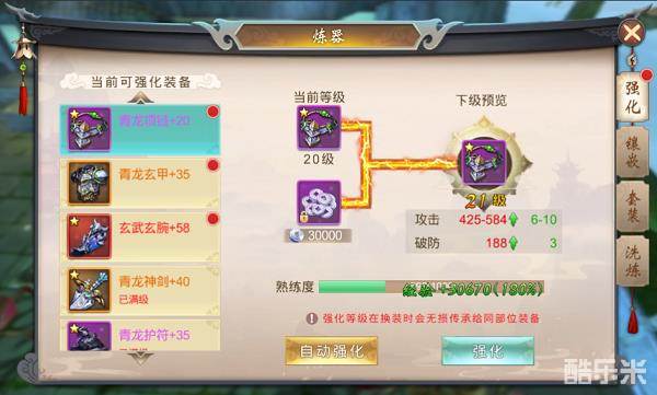 1、炼器,练器包括了强化、镶嵌、套装、洗炼这4大功能,能大幅度提升战力,同时也让玩家更加有追求。