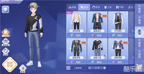 介绍完女生,那男生有哪些服饰呢,细心的dancer一定会发现近期商城也同样上架了一款仙鹤图案的套装,名字叫做“仙鹤入夜”,也是一件值得入手的衣服哦。建议搭配的发型是商城的“张扬个性”发型,如此搭配可以说是帅气逼人啦。