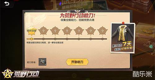 《荒野行动》一周年,与你一同回顾成长之路!即日起至11月21日,玩家可以通过每日贡献助力的方式收集全服助力,逐一解锁一周年纪念战报,回首自己在荒野留下的足迹。不仅如此,玩家首次助力成功后,即可获得降落伞皮肤:英雄纪元,而累计助力七天的玩家还可领取永久纪念时装,作为见证荒野一周年的玩家们身上的勋章!