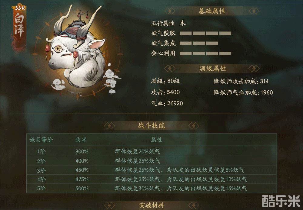 白泽在《神都夜行录》中属辅助型妖灵,是木属性SSR角色,拥有较强的妖气获取和会心利用能力。而之所以其能够成为几乎全阵容的百搭妖灵,根本原因正在于白泽大招的妖气获取能力。