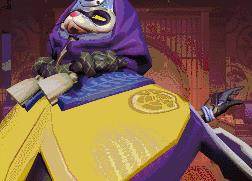 头戴“鼬”字护额,身披紫色斗篷,虽看似只有一人,其实是由三兄弟组成,只要看得仔细,就能发现斗篷下还有两个脑袋正在窥探着四周。伴随着一阵锐利的风,手持多把武器的镰鼬三兄弟即将来到平安京。在战场中,镰鼬的定位为“侍”,擅长游走,拥有强大的爆发能力。