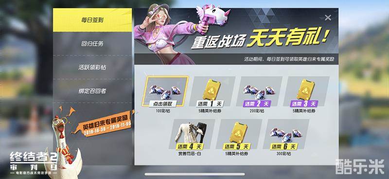 参与高级补给、枪械补给和载具补给的玩家都能获得额外奖励,拥有永久版AKM地狱火、红色彗星以及纯白天使全套时装的玩家,更可直接领取一套电音骑师系列时装以及至尊补给券、彩钻等奖励!
