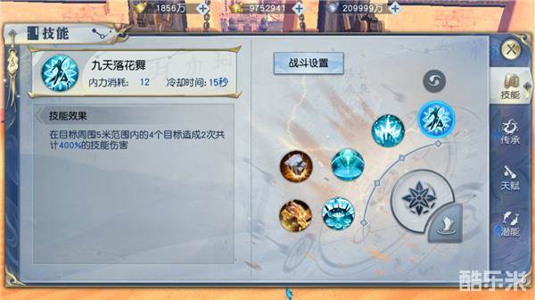 “如果是我,就选择花影破、无上莲花身、幻花惊仙阵、和九天落花舞这四个群伤技能作为首要技能,设置为自动释放,其他四个技能作为次要技能,选择手动释放,不管是PK还是打怪,都用这个搭配。”林动如是说。