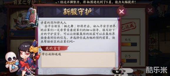 ※阴阳师大人需要在前辈之守护系统左下角的「新服守护」发布好自己的守护宣言,才可以成为预约前辈。