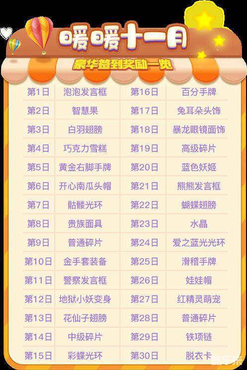 2018年11月豪华签到奖励一览