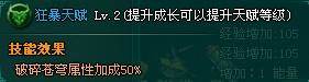 天赋2:狂暴天赋 可以使破碎苍穹魂魄属性加成50%