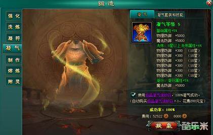 ·可以使用保护符来增加凝气的成功率至100%,保护符在商城出售