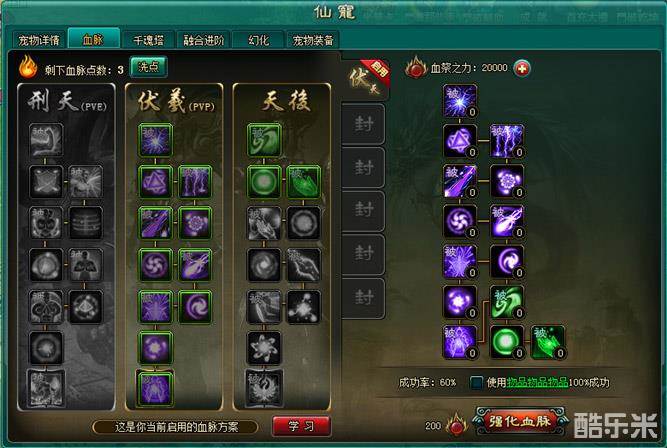 打通刑天血脉,可获得强大的攻击抵御妖物魔兽之流,主PVE之血脉。