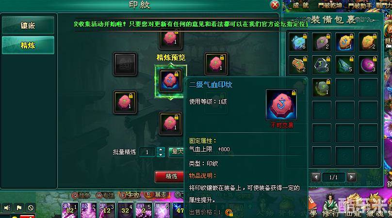 所以还请玩家镶嵌时还需要仔细考虑,因为印纹石镶嵌上后虽然可以取下来,但是需要花费元宝。
