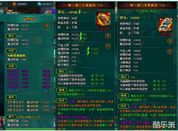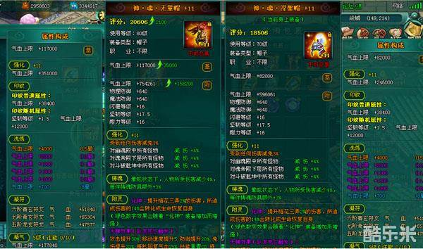 大家重点看一下80级无量帽,因为本人强化11的70级帽子做成80级无量帽后增加了20多万的血,直接加了5000战力。