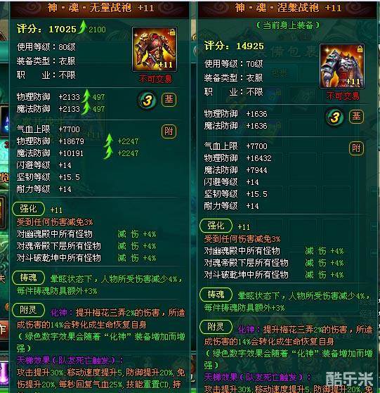 当然所增加的战力也要根据你的强化等级,洗练,印纹等等属性所决定的的。你的越好增加的战力攻击力就越高。本人看了很多人的和自己相比较,强化10的70装备做成80级装备,战力一般没见提升1500左右,强化11增加2000左右,强化12那就更多了。