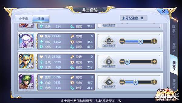 虽然艾尔扎克只使用普攻,但需要确保他的冰冻效果能够持续到艾欧里亚出手,由于其初始速度要比艾欧里亚还慢上一拍,因此剩余速度点得分配给他,让其能够处于五号位(配速78点)。